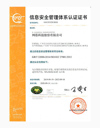网思科技凭借雄厚的技术实力成功获得CMMI5、CCRC、6个ISO标准认证等资质,并被授予国家专精特新小巨人企业、国家高新技术企业、广东省专精特新中小企业和广州未来独角兽创新企业等多项政府和行业的重要荣誉。